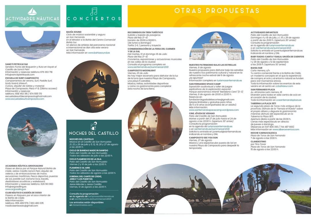 Toda la programación de actividades para este verano en San Fernando. Destacamos las actividades en el castillo de San Romualdo dirigidas al público infantil y la celebración de la Semana del Libro del 29 de junio al 2 de Julio